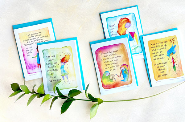 Looking to reconnect with someone but aren’t quite sure what kind of tone is the right one? We’ve got you. With cards ranging from gentle and sweet, to serious and contemplative, goofy and fun, to wistful and deep, we would love to help you find the words.